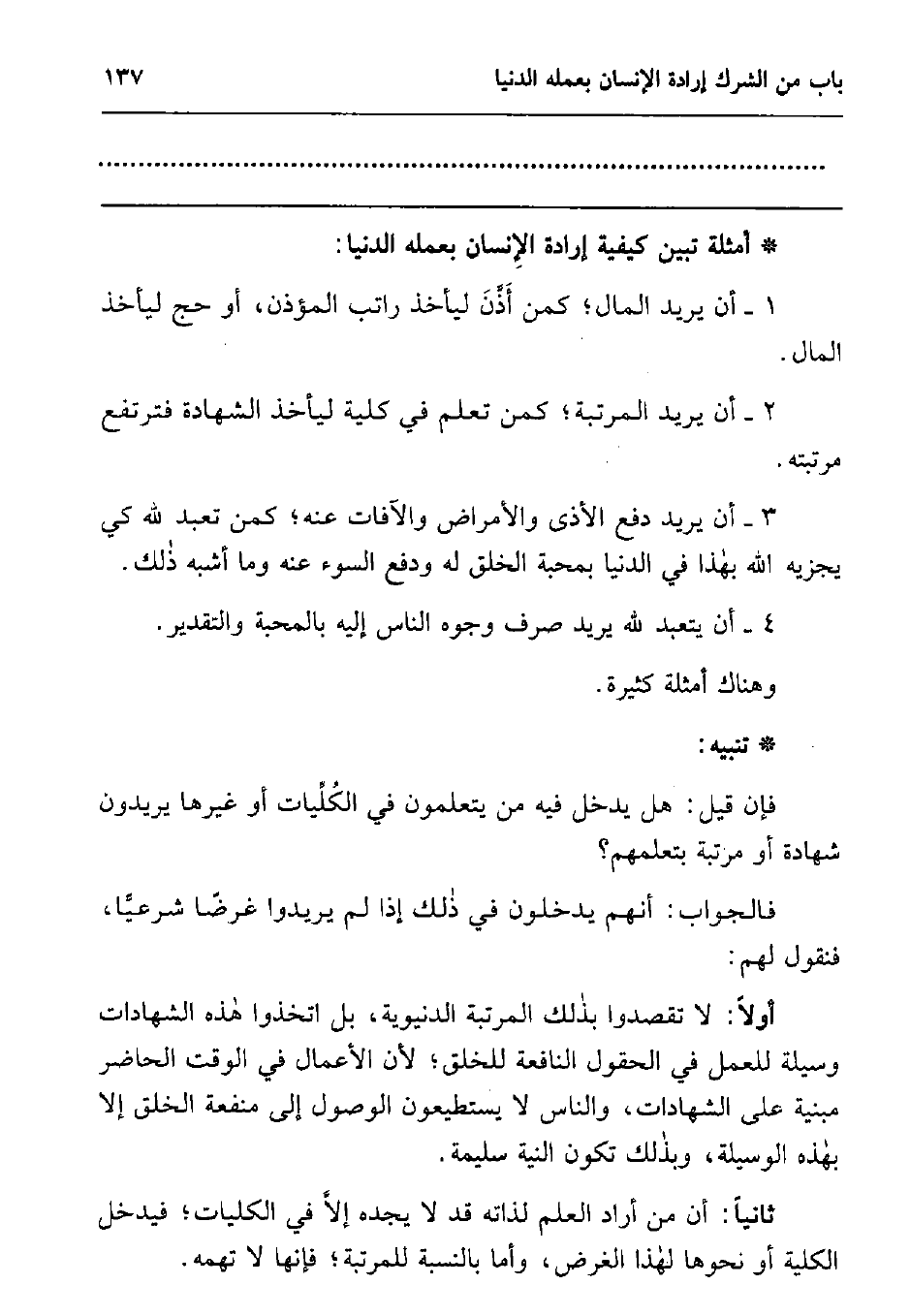 فإن قيل: هل يدخل فيه من يتعلمون في الكليات أو غيرها، يريدون شهادة، أو مرتبة بتعلمهم؟