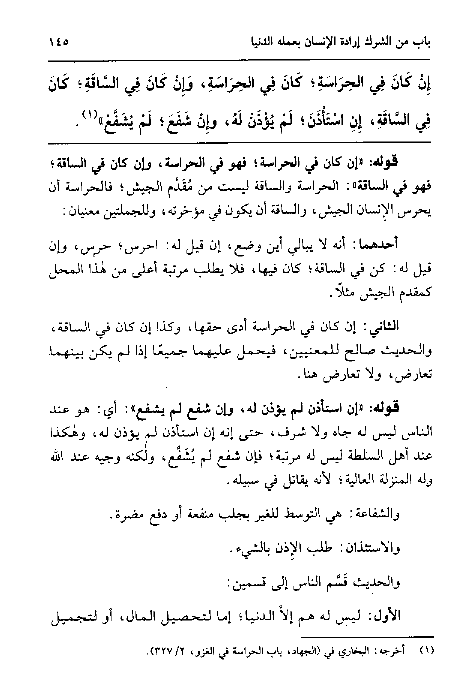 إن كان في الحراسة; كان في الحراسة، وإن كان في الساقة; كان في الساقة، إن استأذن; لم يؤذن له، وإن شفع; لم يشفع (1.