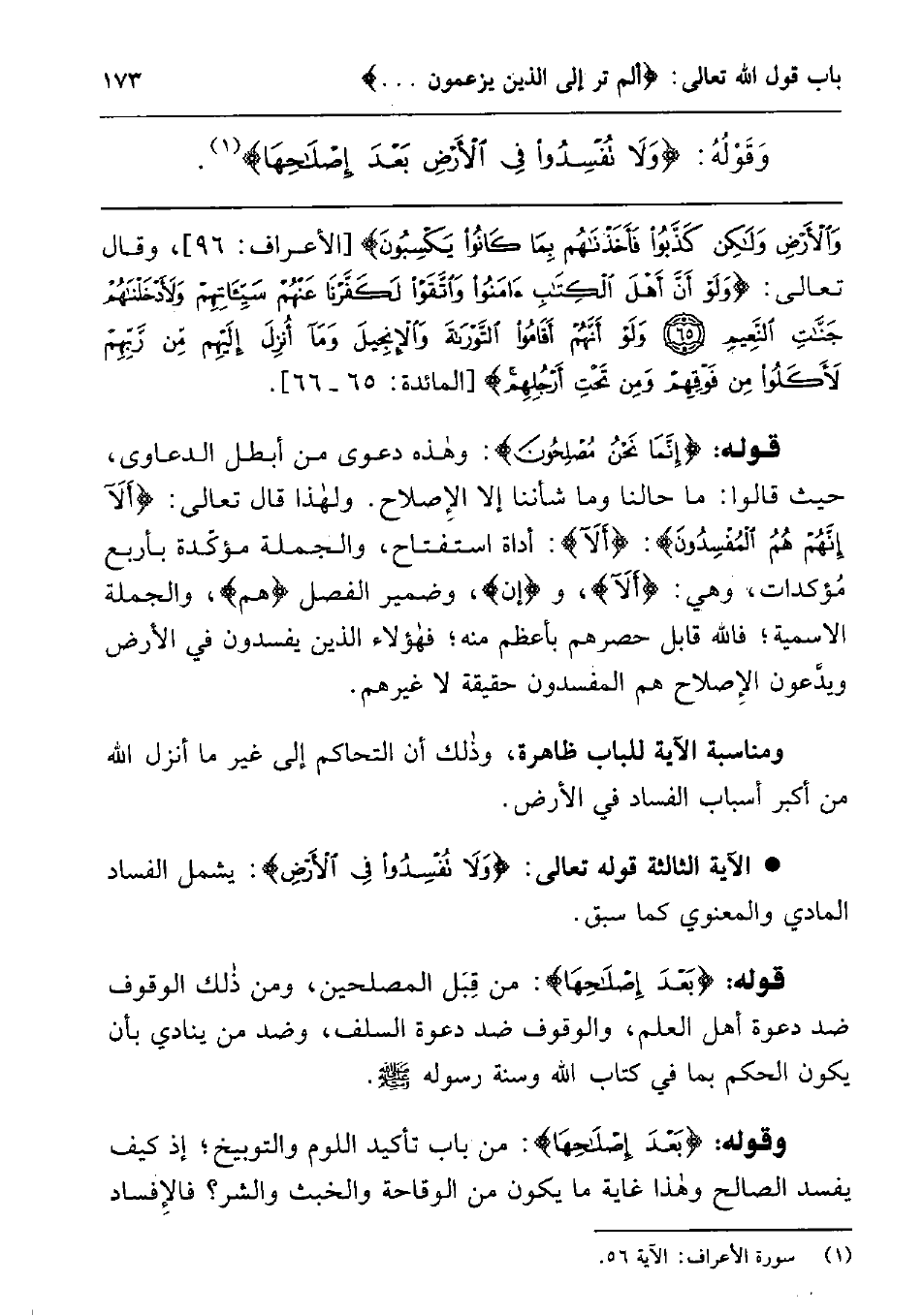 وقوله: "بعد إصلاحها": من باب تأكيد اللوم والتوبيخ; إذ كيف يفسد الصالح وهذا غاية ما يكون من الوقاحة، والخبث، والشر! فالإفساد