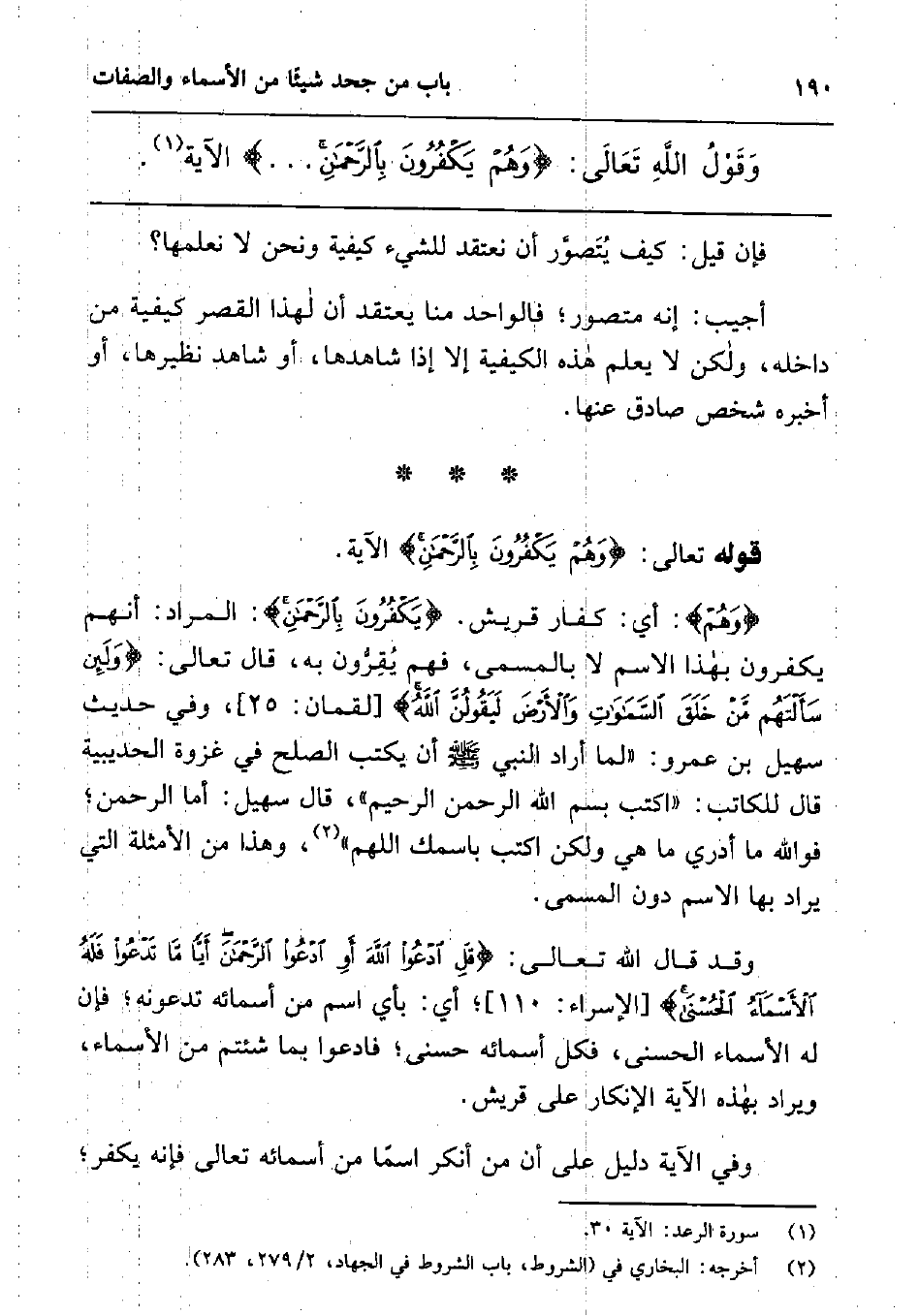 وقول الله تعالى: {وَهُمْ يَكْفُرُونَ بِالرَّحْمَنِ} ، الآية، [الرعد: من الآية30] .
