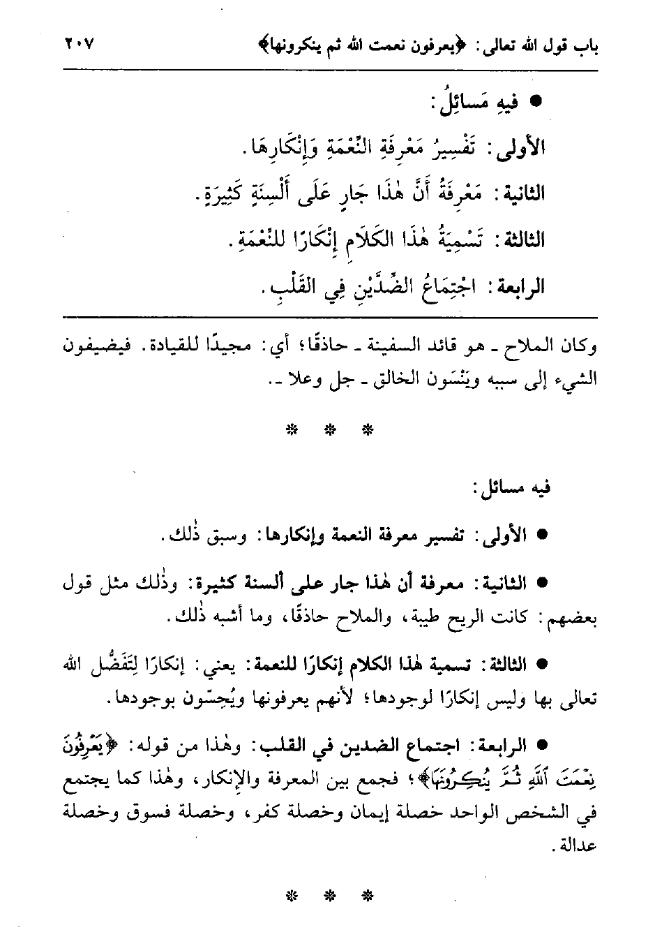 الأولى: تفسير معرفة النعمة وإنكارها: وسبق ذلك.