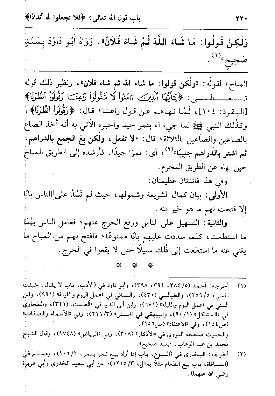 ولكن قولوا: ما شاء الله ثم شاء فلان " رواه أبو داود بسند صحيح1.