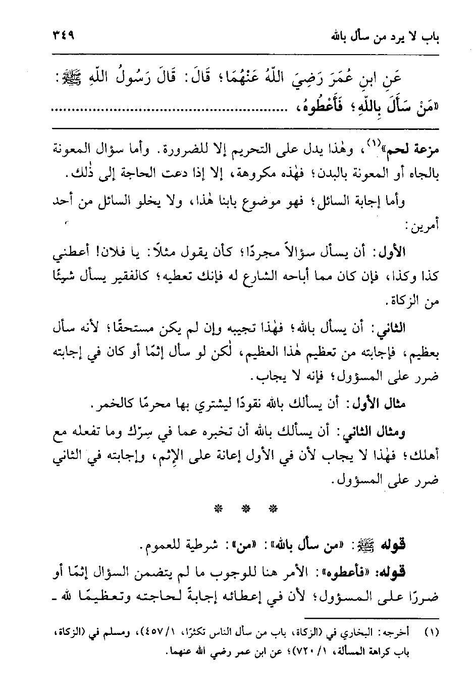 عن ابن عمر رضي الله عنهما; قال: قال رسول الله صلى الله عليه وسلم " من سأل بالله، فأعطوه،........................................................