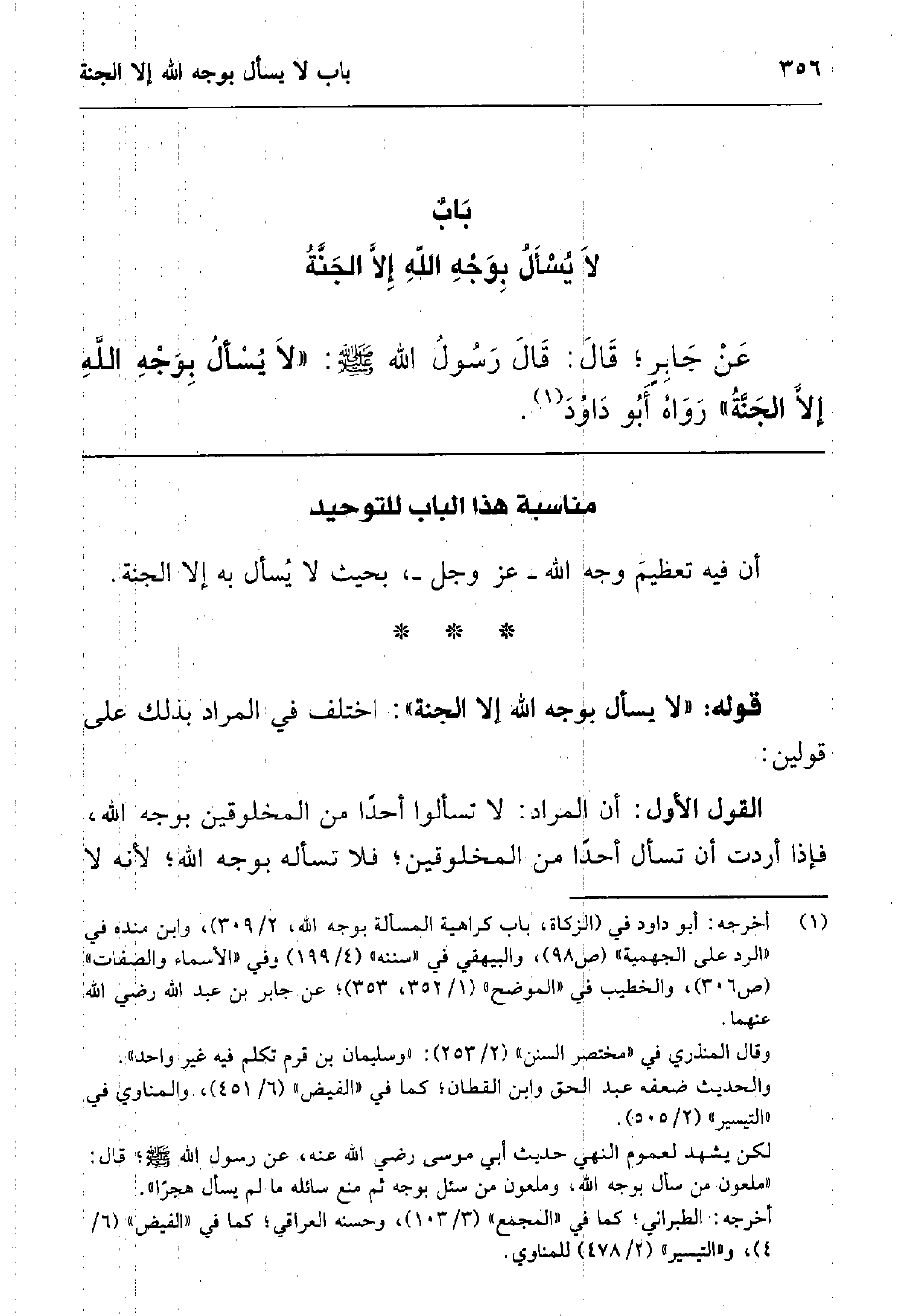 عن جابر; قال: قال رسول الله صلى الله عليه وسلم " لا يسأل بوجه الله إلا الجنة " رواه أبو داود 1.