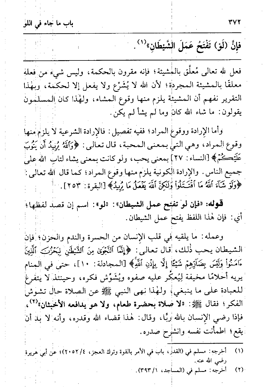 فإن (لو) تفتح عمل الشيطان "1.