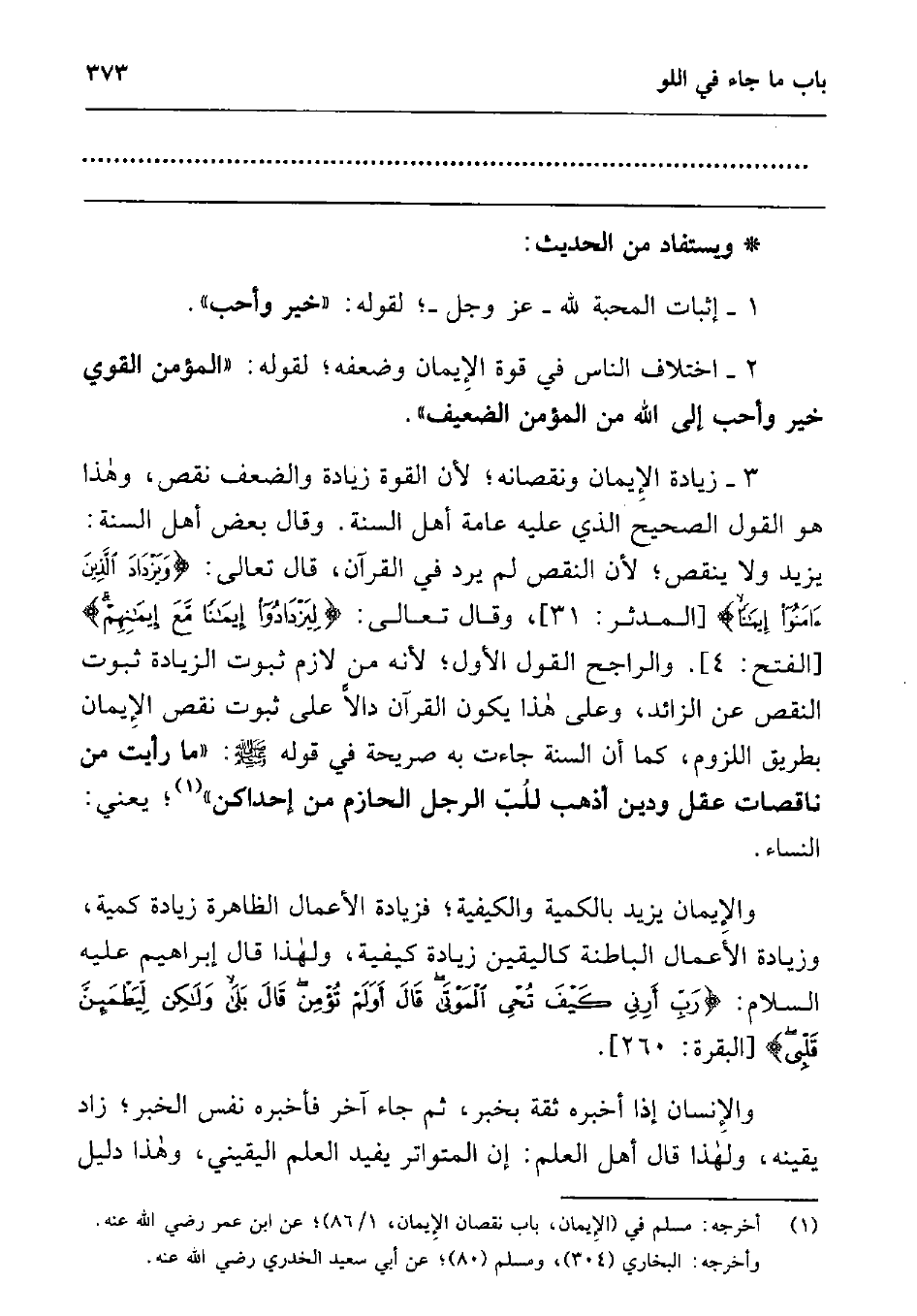 4 أخرجه: مسلم في (الإيمان, باب نقصان الإيمان, 1/86) ; عن ابن عمر رضي الله عنه. وأخرجه: البخاري (304) , ومسلم (80) ; عن أبي سعيد الخدري رضي الله عنه.