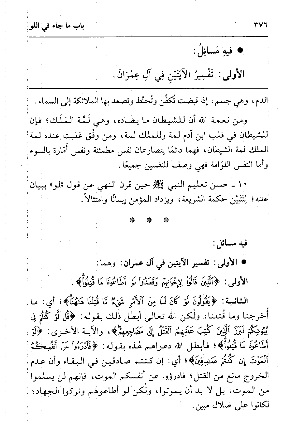 الأولى: {الَّذِينَ قَالُوا لإِخْوَانِهِمْ وَقَعَدُوا لَوْ أَطَاعُونَا مَا قُتِلُوا} 1.