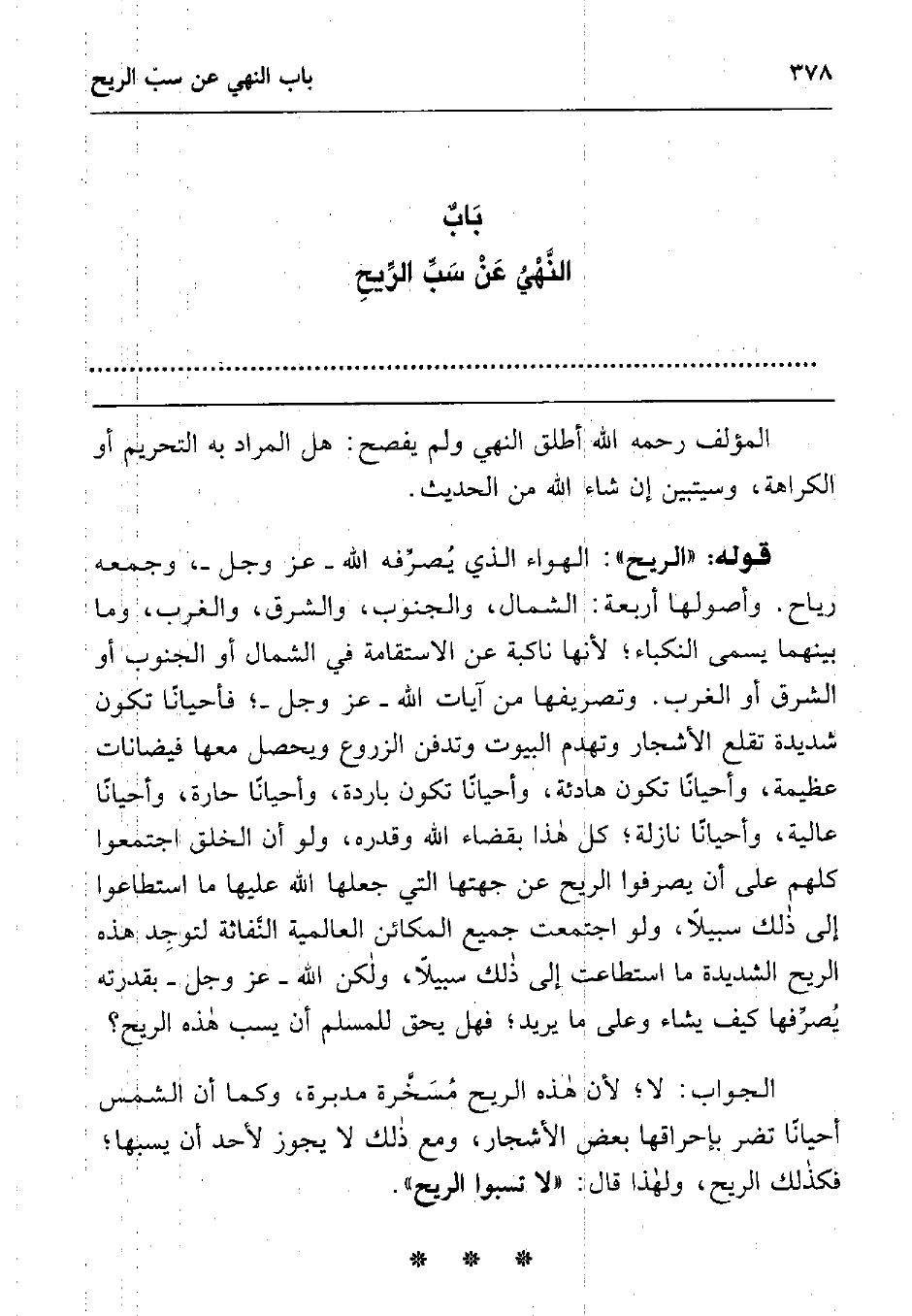 ولو أن الخلق اجتمعوا كلهم على أن يصرفوا الريح عن جهتها التي جعلها الله عليها ما استطاعوا إلى ذلك سبيلا، ولو اجتمعت جميع المكائن العالمية النفاثة لتوجد هذه الريح الشديدة ما استطاعت إلى ذلك سبيلا، ولكن الله عز وجل بقدرته يصرفها كيف يشاء وعلى ما يريد; فهل يحق للمسلم أن يسب هذه الريح؟