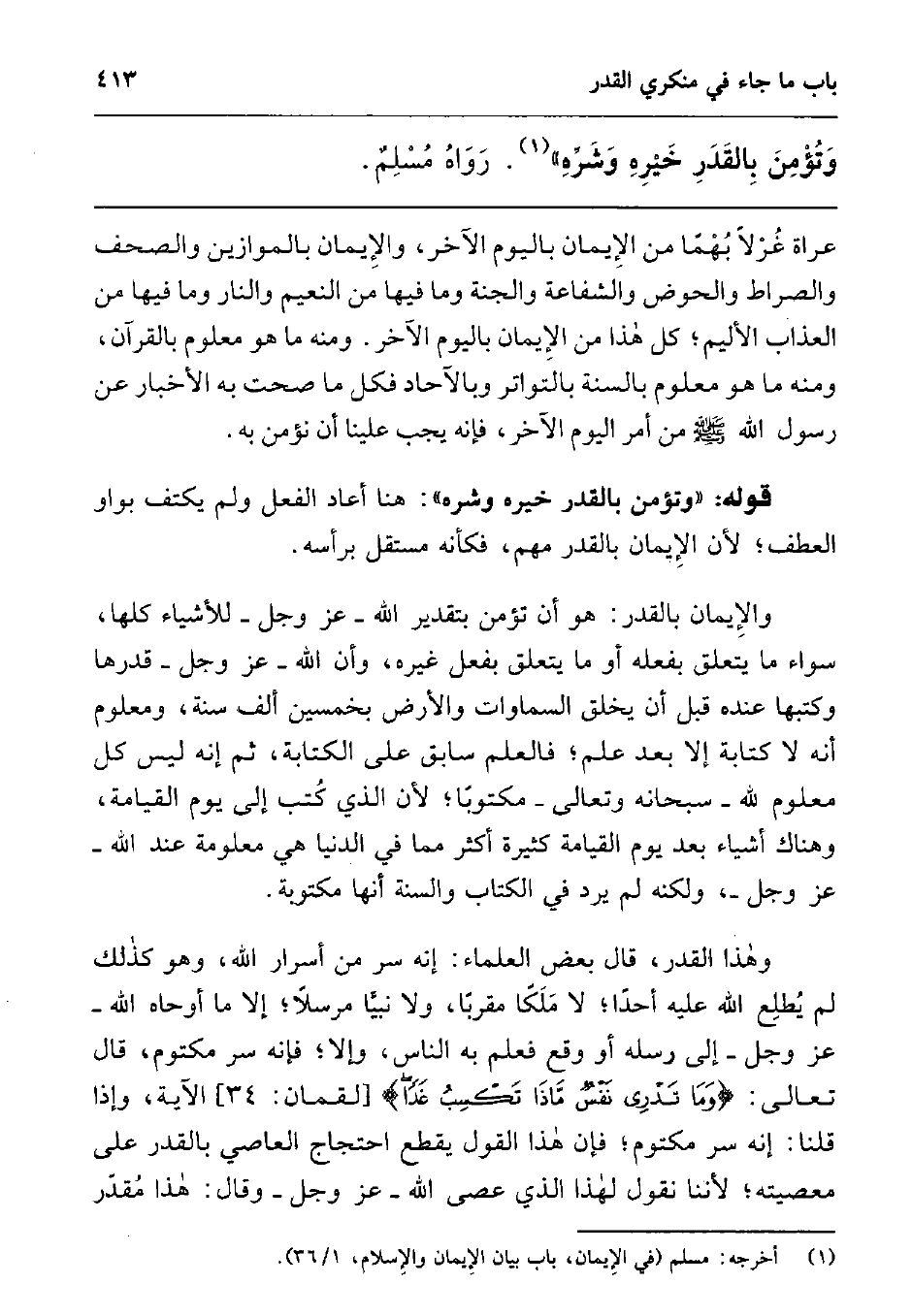 وتؤمن بالقدر خيره وشره " رواه مسلم1.