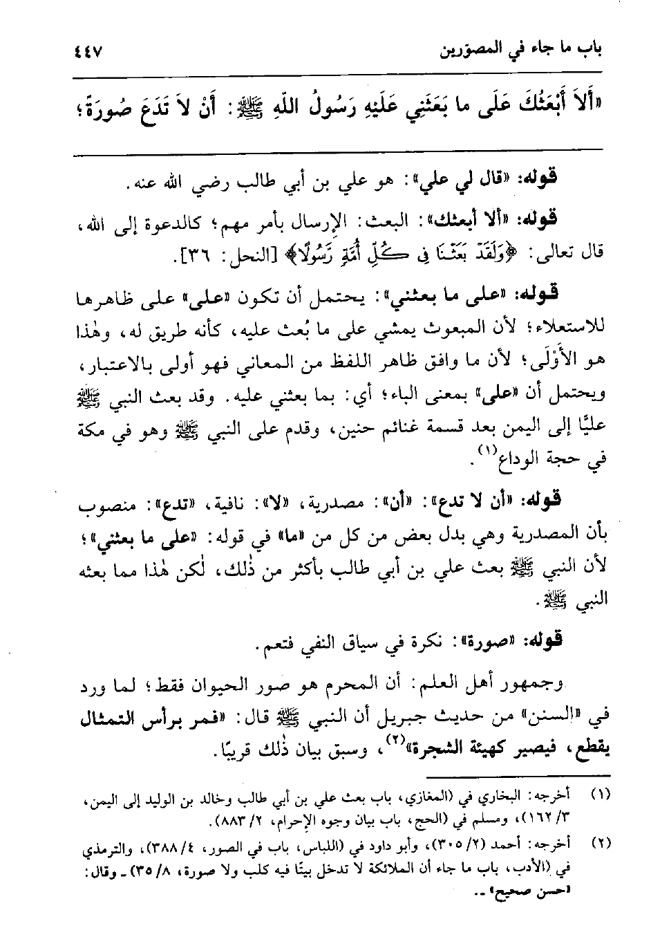 " ألا أبعثك على ما بعثني عليه رسول الله صلى الله عليه وسلم أن لا تدع صورة ;