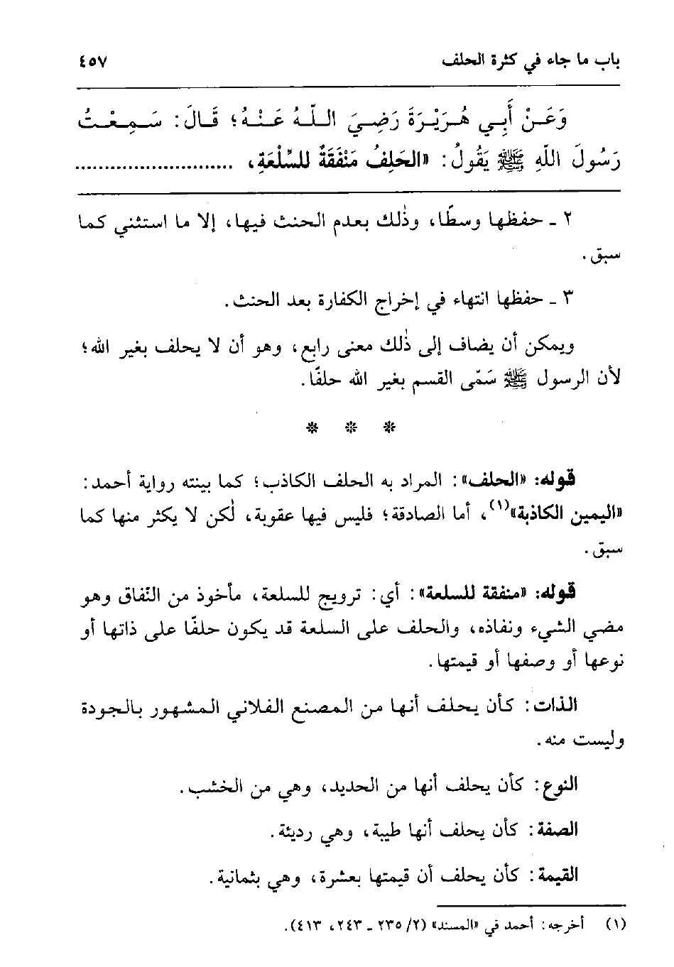 قوله: "الحلف": المراد به الحلف الكاذب; كما بينته رواية أحمد: "اليمين الكاذبة1 "، أما الصادقة; فليس فيها عقوبة، لكن لا يكثر منها كما سبق.