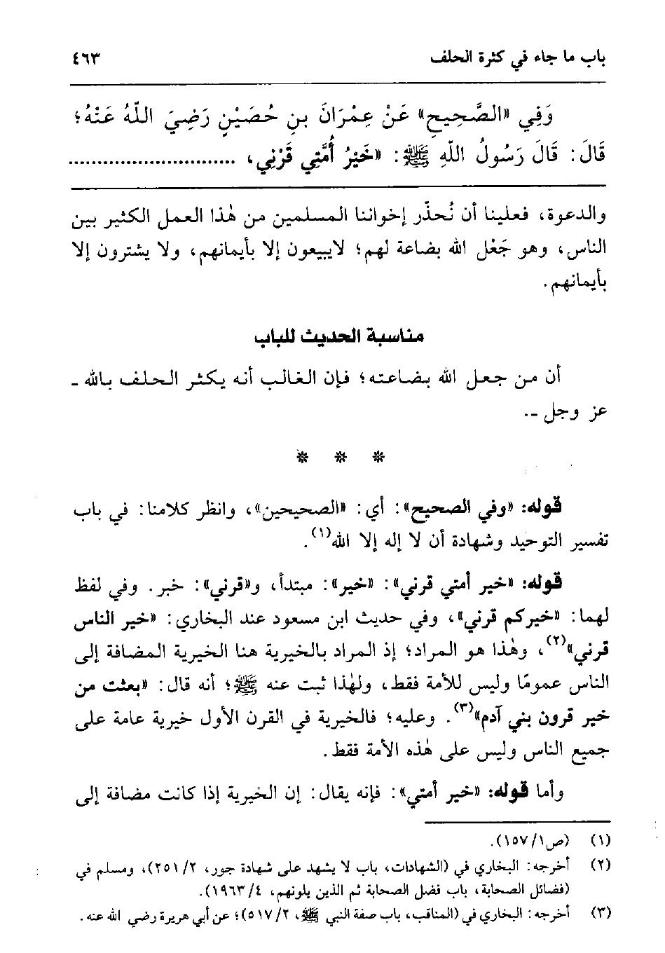 وفي " الصحيح " عن عمران بن حصين رضي الله عنه قال: قال رسول الله صلى الله عليه وسلم: " خير أمتي قرني،......................................................