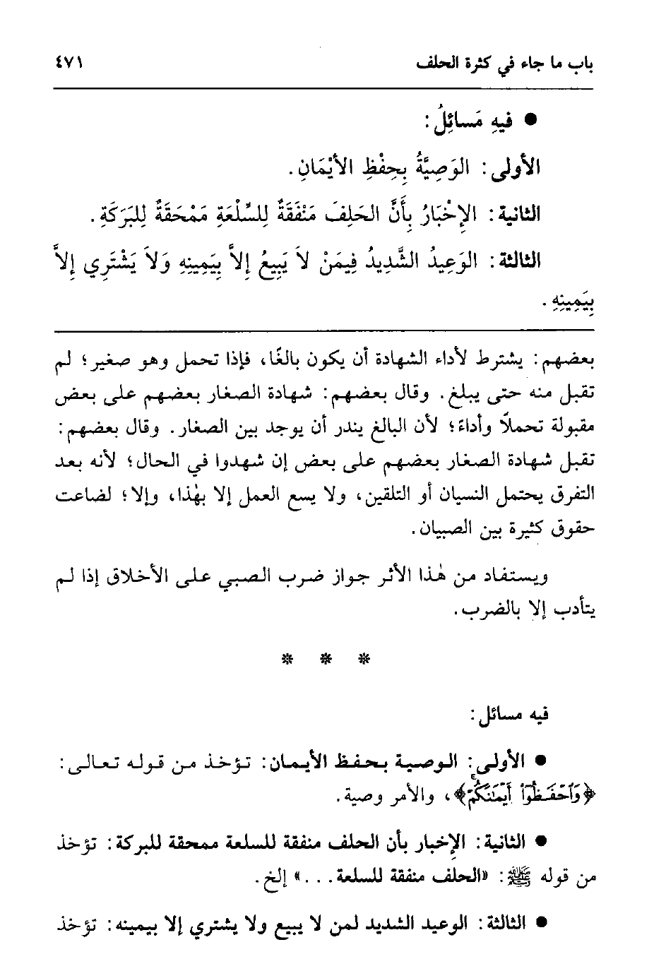 الثالثة: الوعيد الشديد لمن لا يبيع ولا يشتري إلا بيمينه تؤخذ