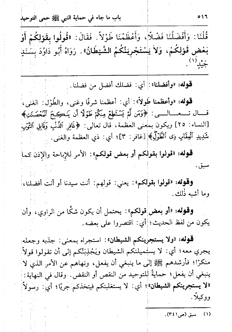 قلنا: وأفضلنا فضلا، وأعظمنا طولا. فقال: قولوا بقولكم أو بعض قولكم، ولا يستجرينكم الشيطان " رواه أبو داود بسند جيد1.