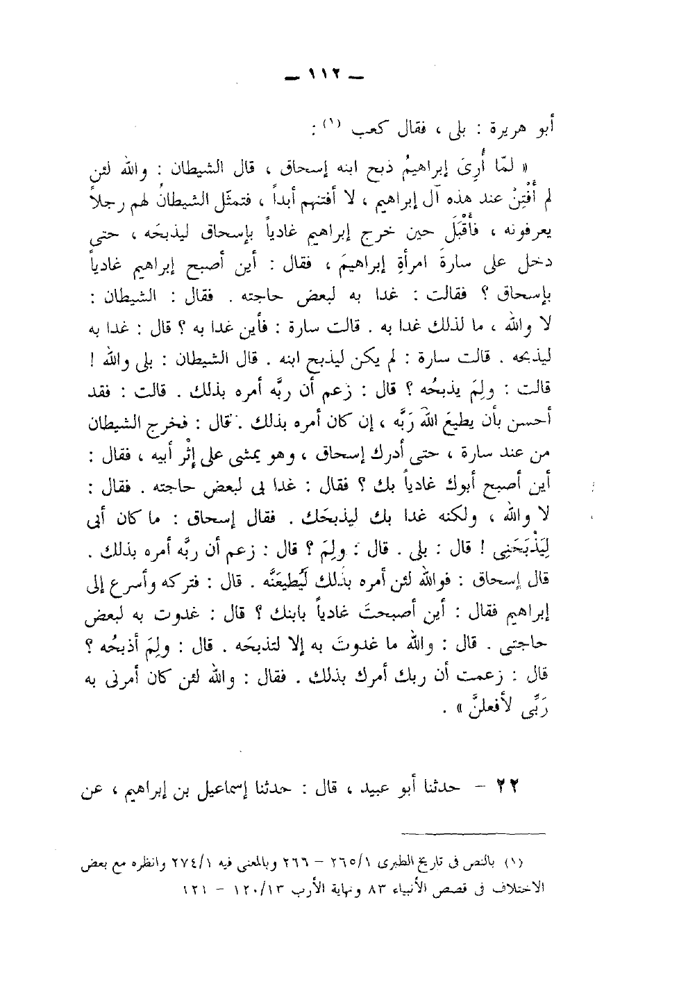 22 - حدثنا أبو عبيد قال حدثنا إسماعيل بن إبراهيم عن -[113]- أيوب وهشام عن ابن سيرين عن أبي هريرة قال: