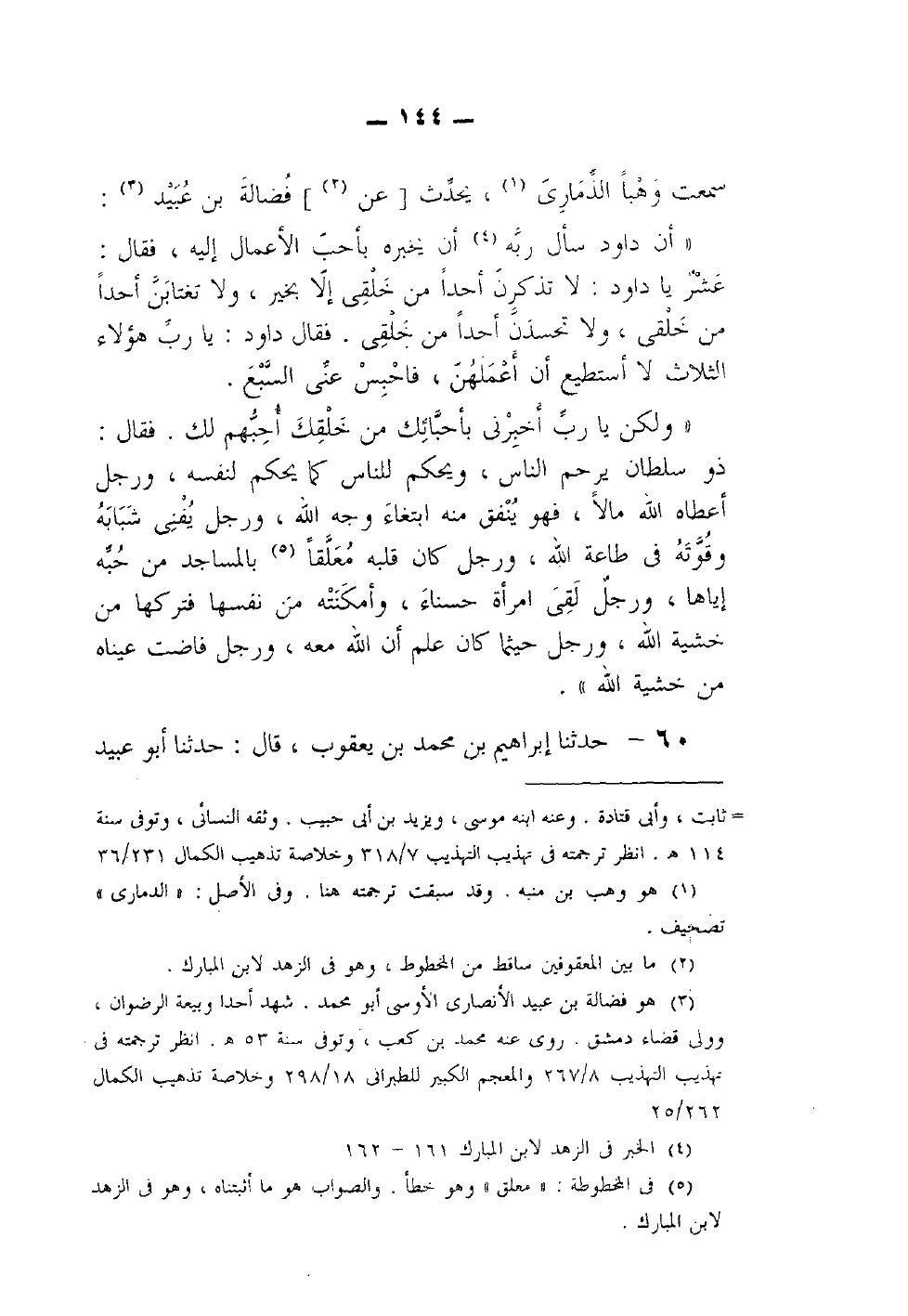 (¬1) ما بين المعقوفين زيادة من الزهد لابن حنبل، وبدونها لا يستقيم الكلام.