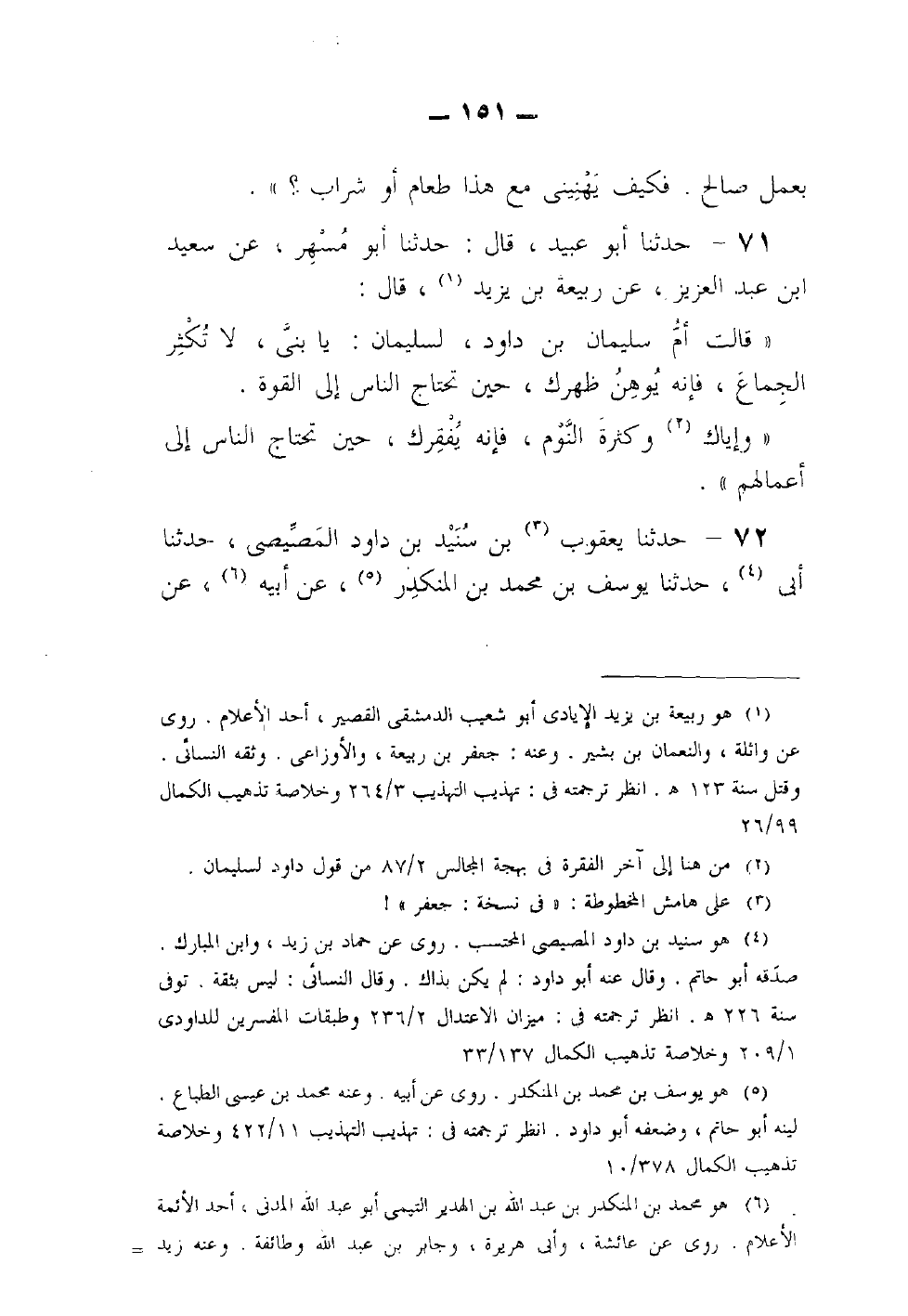 71 - حدثنا أبو عبيد قال حدثنا أبو مسهر عن سعيد بن عبد العزيز عن ربيعة بن يزيد قال
