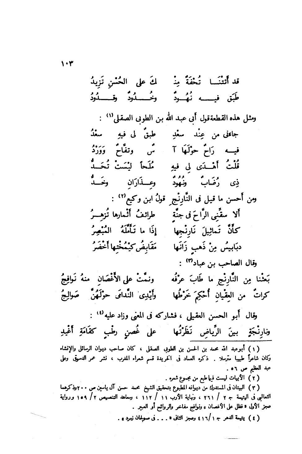 بعثنا من النارنجِ ما طابَ عرفهُ ... ونمتْ على الأغصانِ منه نوافجُ