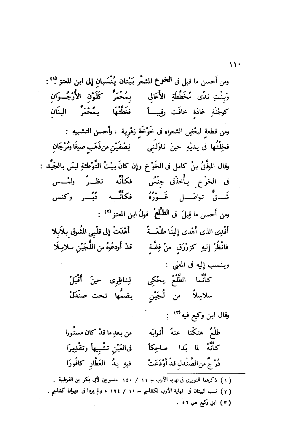 ومن أحسن ما قيل في الطلع قول ابن المعتز: