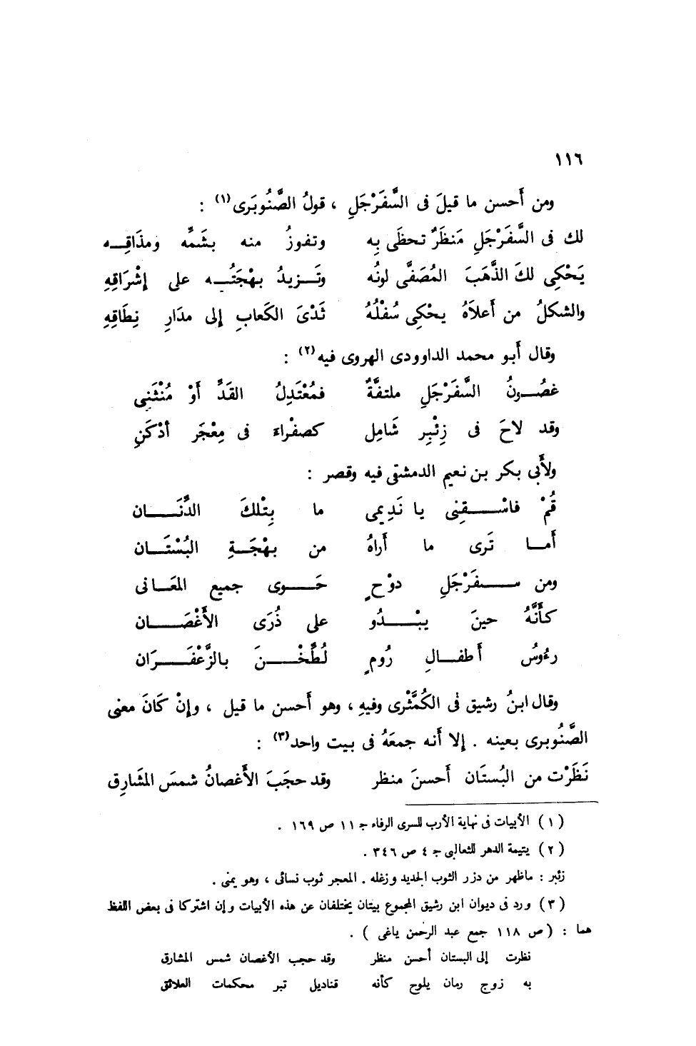 ومن أحسن ما قيل في السفرجلِ، قول الصنوبري: