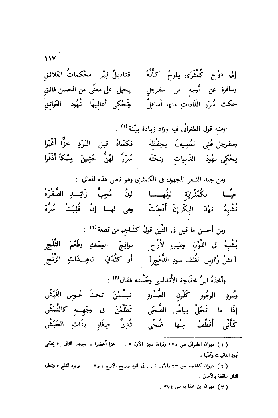 ومنه قول الطغرائي فيه وزاد زيادة بينة: