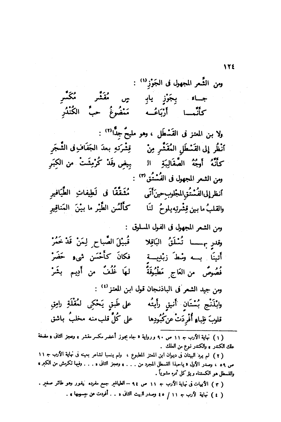 ومن جيد الشعر في الباذنجان قول ابن المعتز: