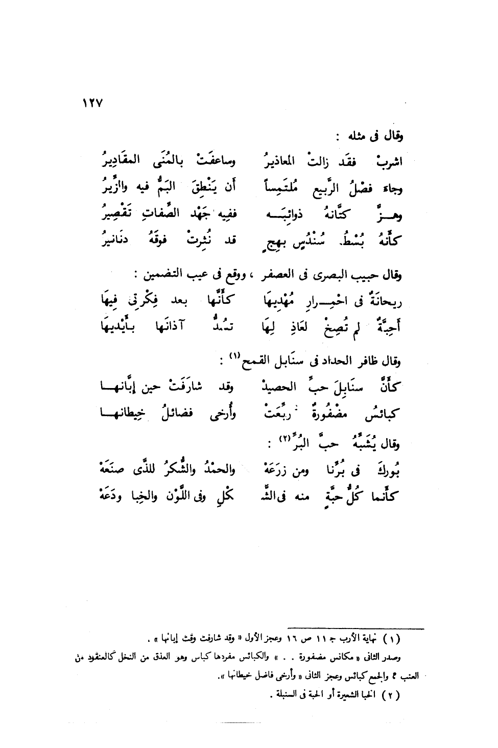 وقال حبيب البصري في العصفر، ووقع في عيب التضمين: