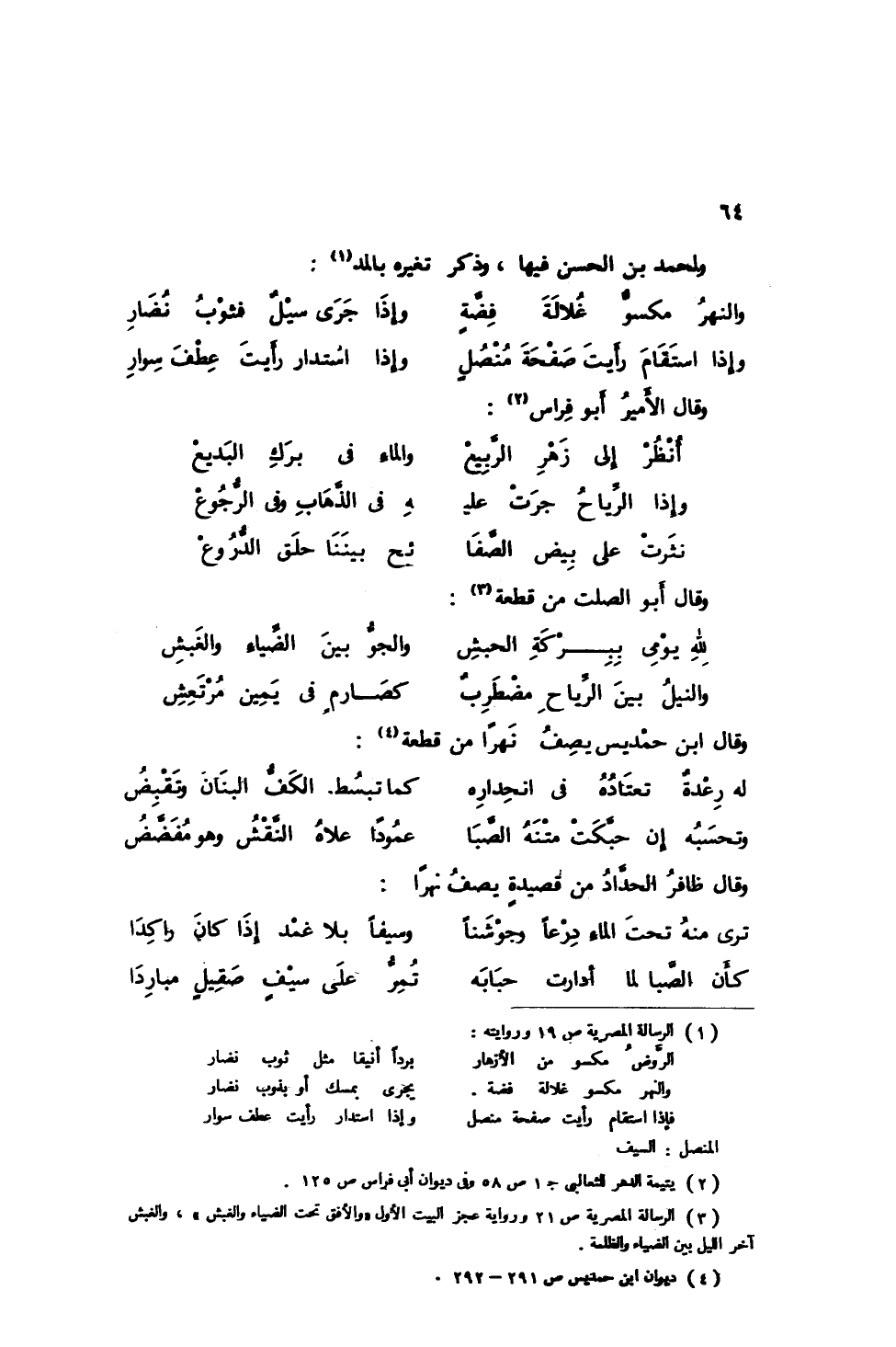 وقال ابن حمديس يصفُ نهراً من قطعة: