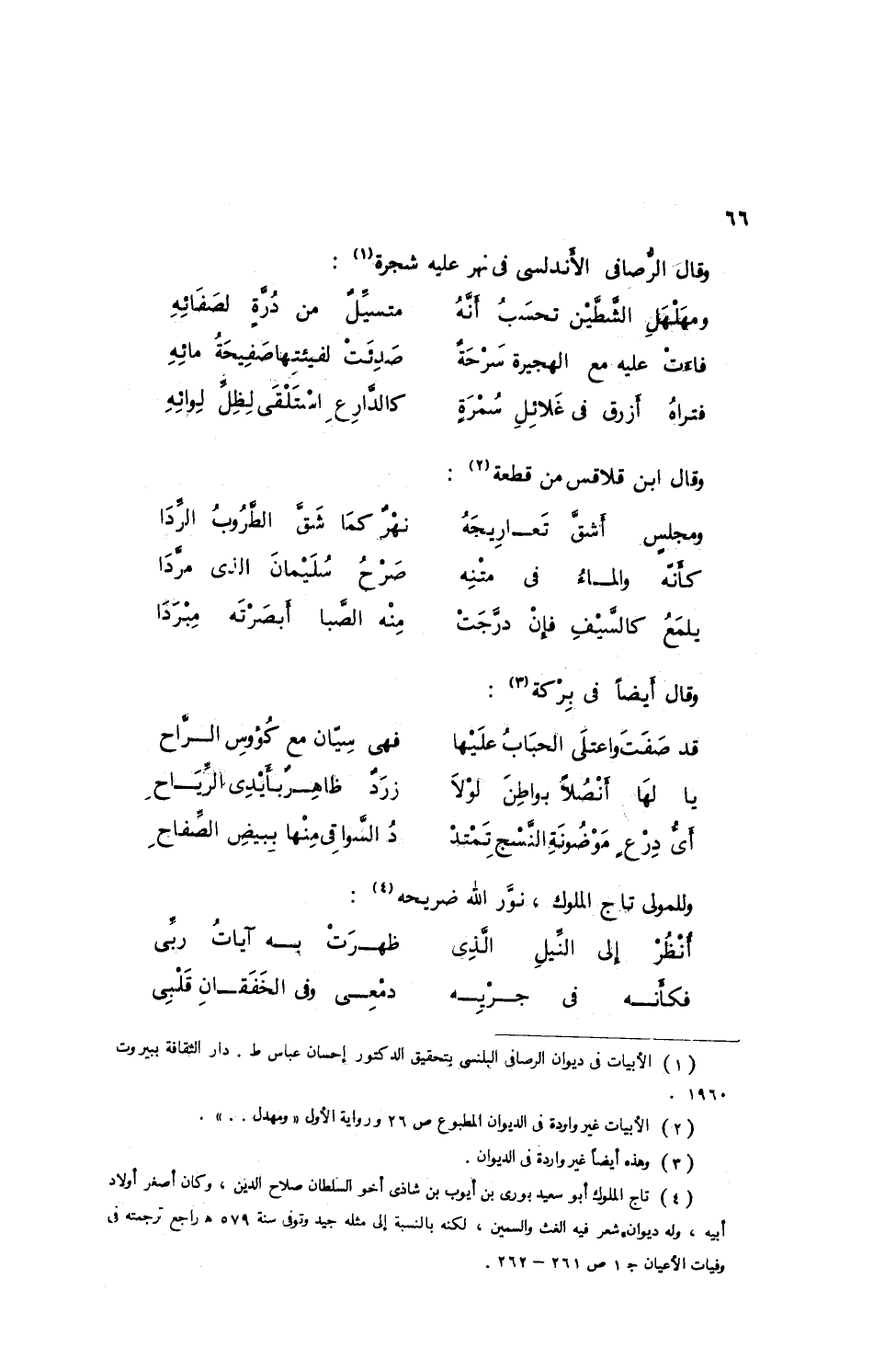 وقال الرصافي الأندلسي في نهر عليه شجرة: