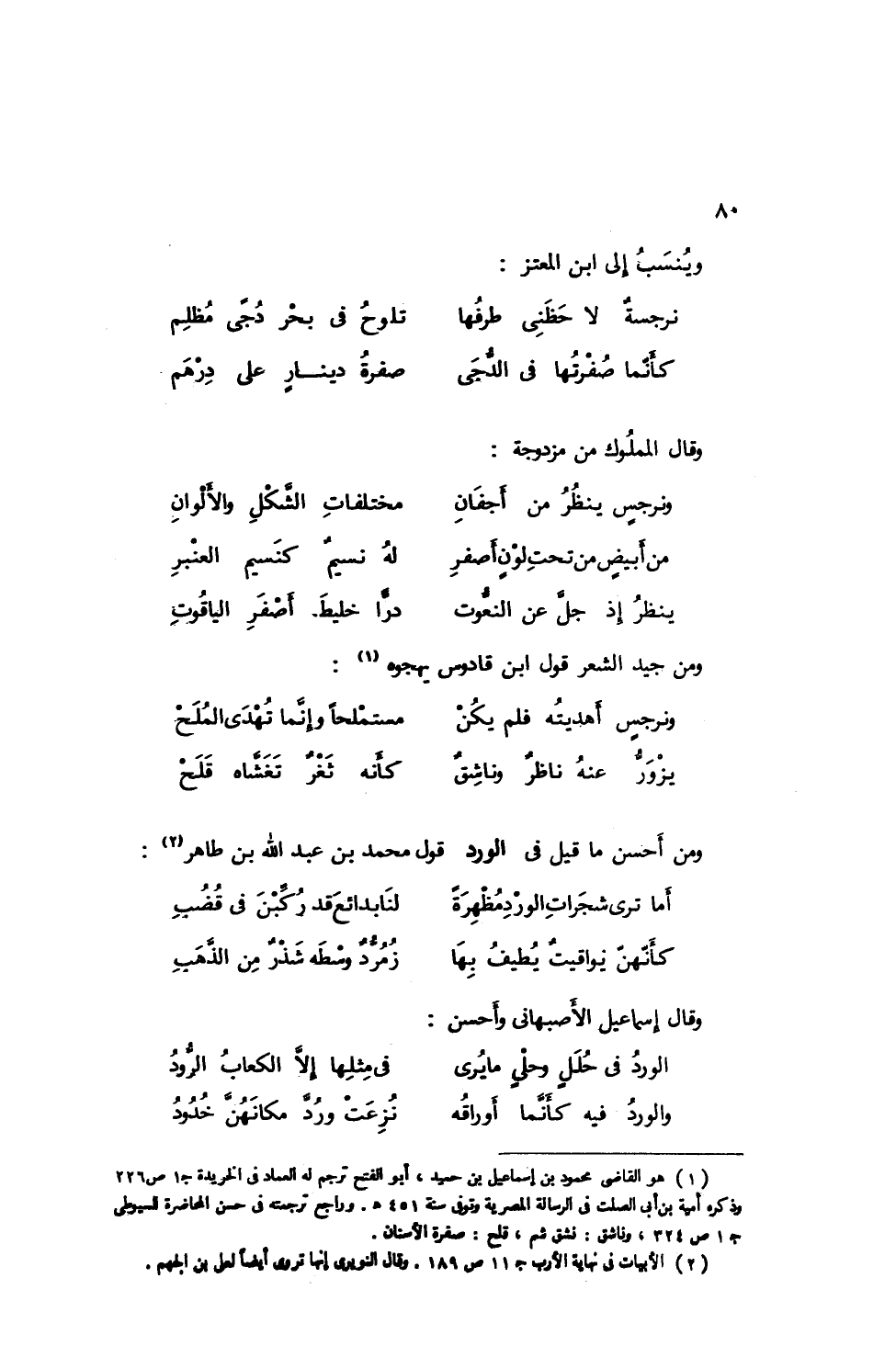 ومن أحسن ما قيل في الورد قول محمد بن عبد الله بن طاهر: