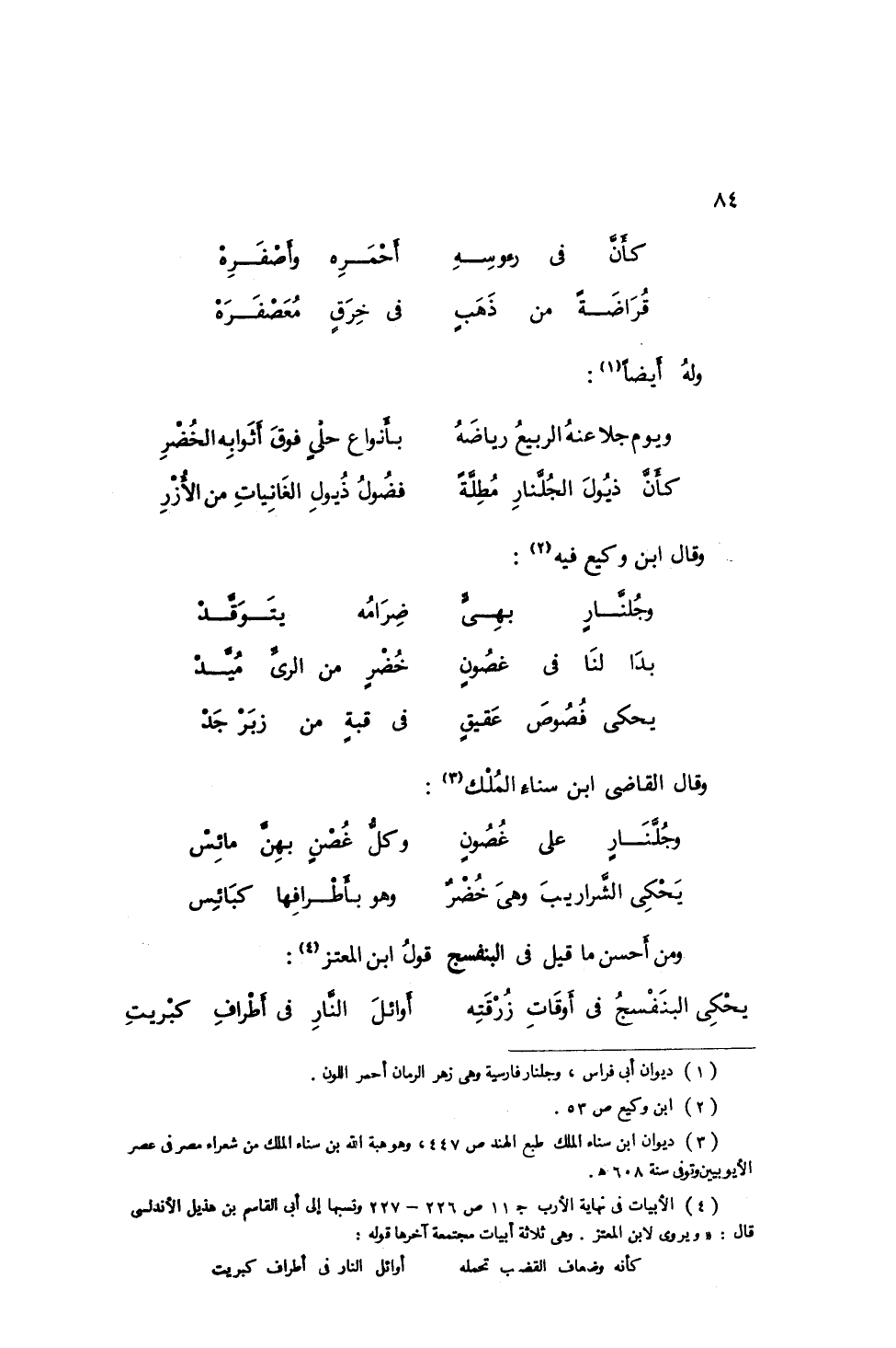 وجلنارٍ على غصونٍ ... وكلُّ غصنٍ بهنَّ مائسْ