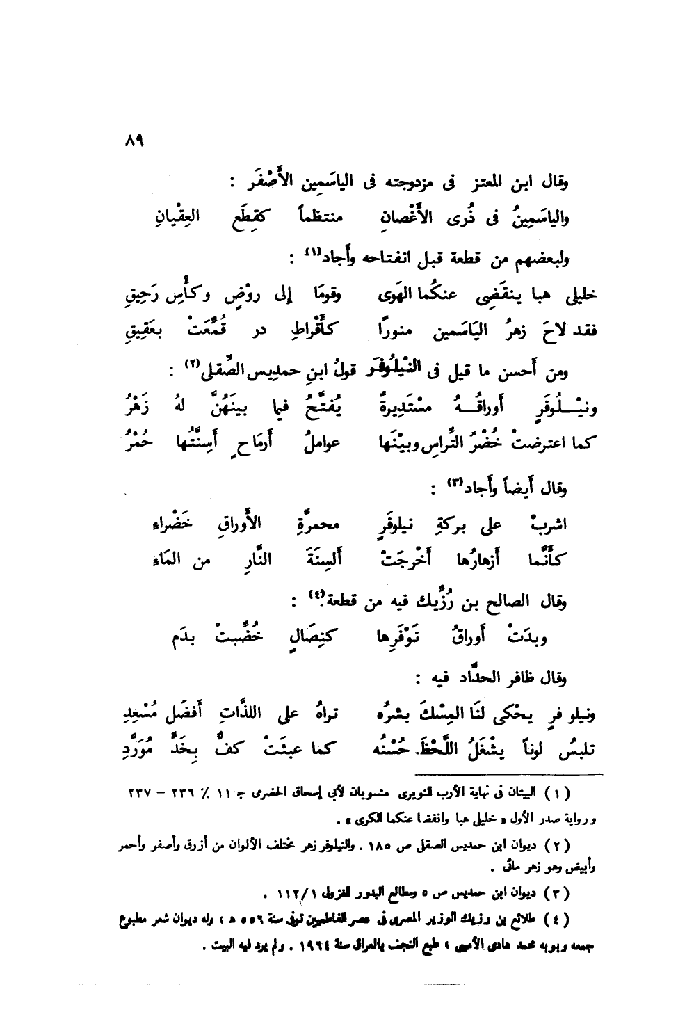 ومن أحسن ما قيل في النيلوفر قول ابن حمديس الصقلي: