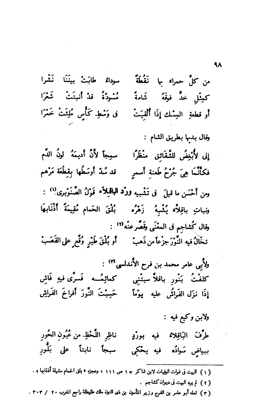 ومن أحسن ما قيل في تشبيه ورد الباقلاء قول الصنوبري: