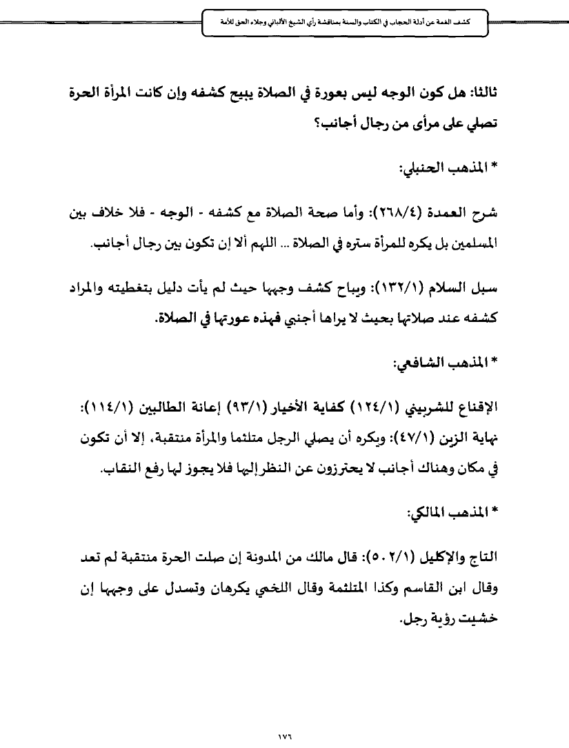 ثالثا: هل كون الوجه ليس بعورة في الصلاة يبيح كشفه وإن كانت المرأة الحرة تصلي على مرأى من رجال أجانب؟