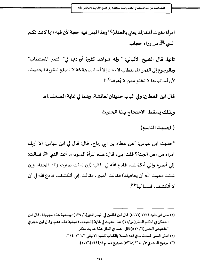 (¬١) انظر: الثمر المستطاب في فقه السنة والكتاب للشيخ الألباني ١/ ٣١١ - ٣١٤.