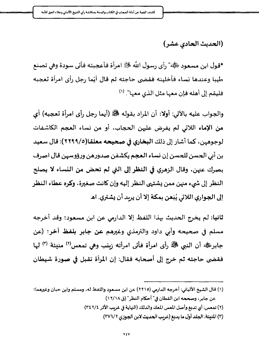 (¬١) قال الشيخ الألباني: أخرجه الدارمي (٢٢١٥) عن ابن مسعود واللفظ له، ومسلم وابن حبان وغيرهما؛ عن جابر، وصححه ابن القطان في" أحكام النظر" (ق ١٨/ ١٢)