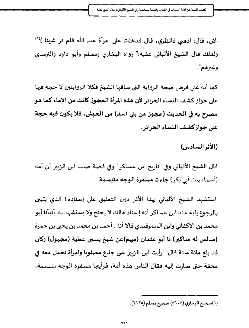 الآن، قال: اذهبي فانظري، قال فدخلت على امرأة عبد الله فلم تر شيئا) (¬١) ولذلك قال الشيخ الألباني عقبه: " رواه البخاري ومسلم وأبو داود والترمذي وغيرهم".