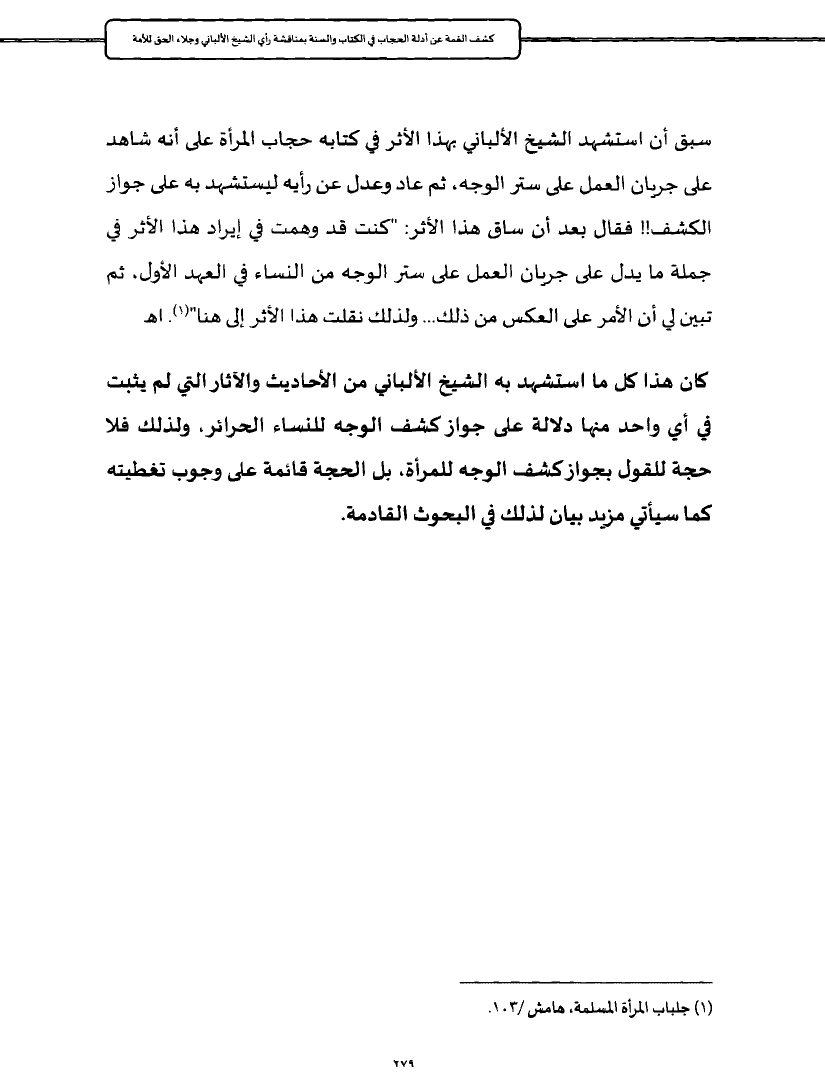 (¬١) جلباب المراة المسلمة، هامش / ١٠٣.