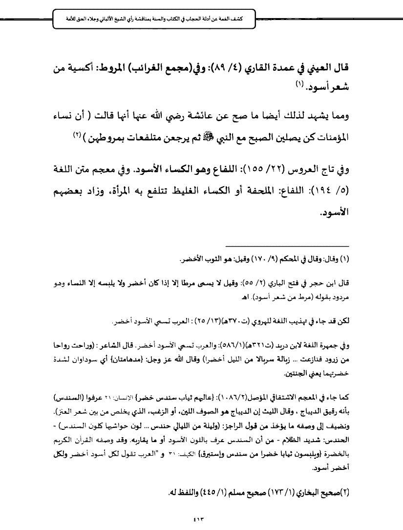 قال ابن حجر في فتح الباري (٢/ ٥٥): وقيل لا يسمى مرطا إلا إذا كان أخضر ولا يلبسه إلا النساء وهو مردود بقوله (مرط من شعر أسود). اهـ