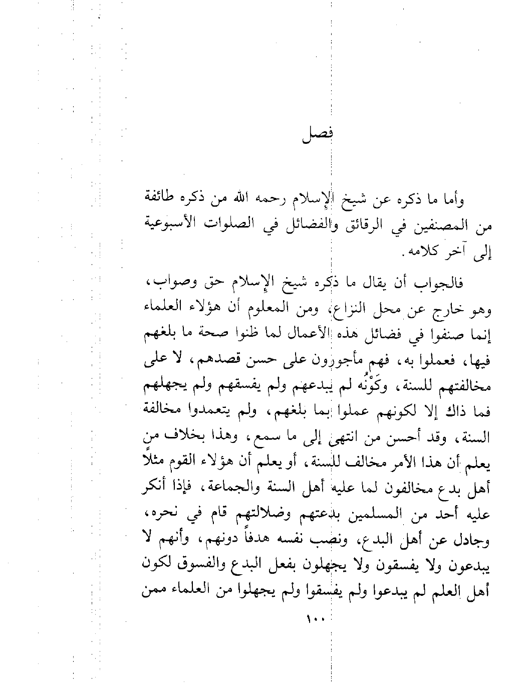 وأما ما ذكره عن شيخ الإسلام رحمه الله من ذكره طائفة من المصنفين في الرقائق والفضائل في الصلوات الأسبوعية إلى آخر كلامه.