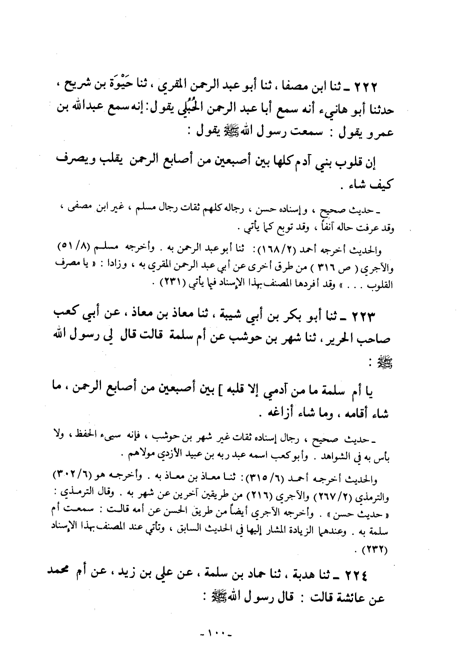 "إِنَّ قُلُوبَ بَنِي آدَمَ كُلَّهَا بَيْنَ أُصْبُعَيْنِ مِنْ أَصَابِعِ الرَّحْمَنِ يَقْلِبُ وَيَصْرِفُ كَيْفَ شاء".