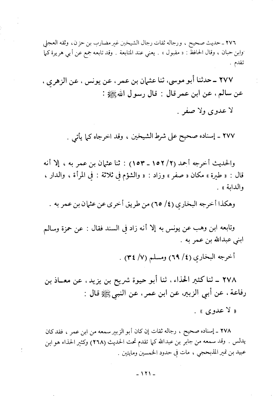 278- إسناده صحيح رجاله ثقات إن كان أبو الزبير سمعه من ابن عمر فقد كان يدلس. وقد سمعه من جابر بن عبد الله كما تقدم تحت الحديث 268 وكثير الحذاء هو ابن عبيد بن نمير المذبحجي مات في حدود الخمسين ومائتين.