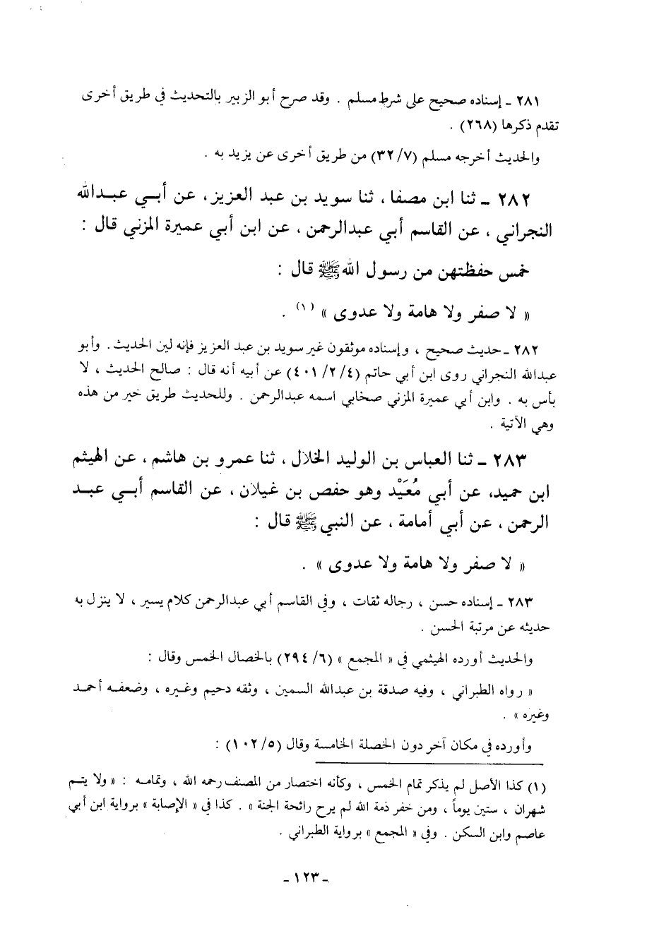 283- إسناده حسن رجاله ثقات وفي القاسم أبي عبد الرحمن كلام يسير لا ينزل به حديثه عن مرتبة الحسن.