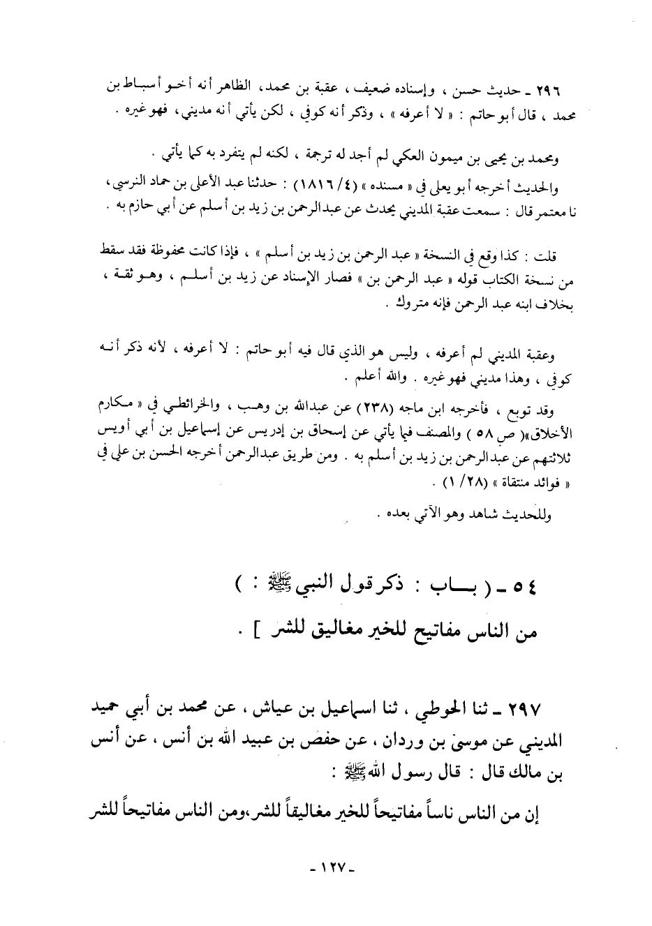 54 – "بَابُ: ذِكْرِ قَوْلِ النَّبِيِّ صَلَّى اللَّهُ عَلَيْهِ وَسَلَّمَ: "مِنَ النَّاسِ مَفَاتِيحٌ لِلْخَيْرِ مَغَالِيقٌ لِلشَّرِّ" ".