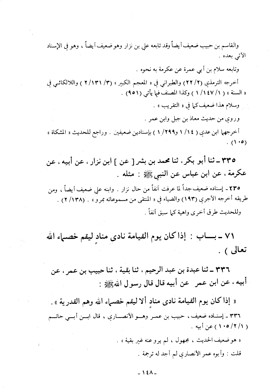 71 – "بَابُ إِذَا كَانَ يَوْمُ الْقِيَامَةِ نَادَى مُنَادٍ لِيَقُمْ خُصَمَاءُ اللَّهِ تعالى".