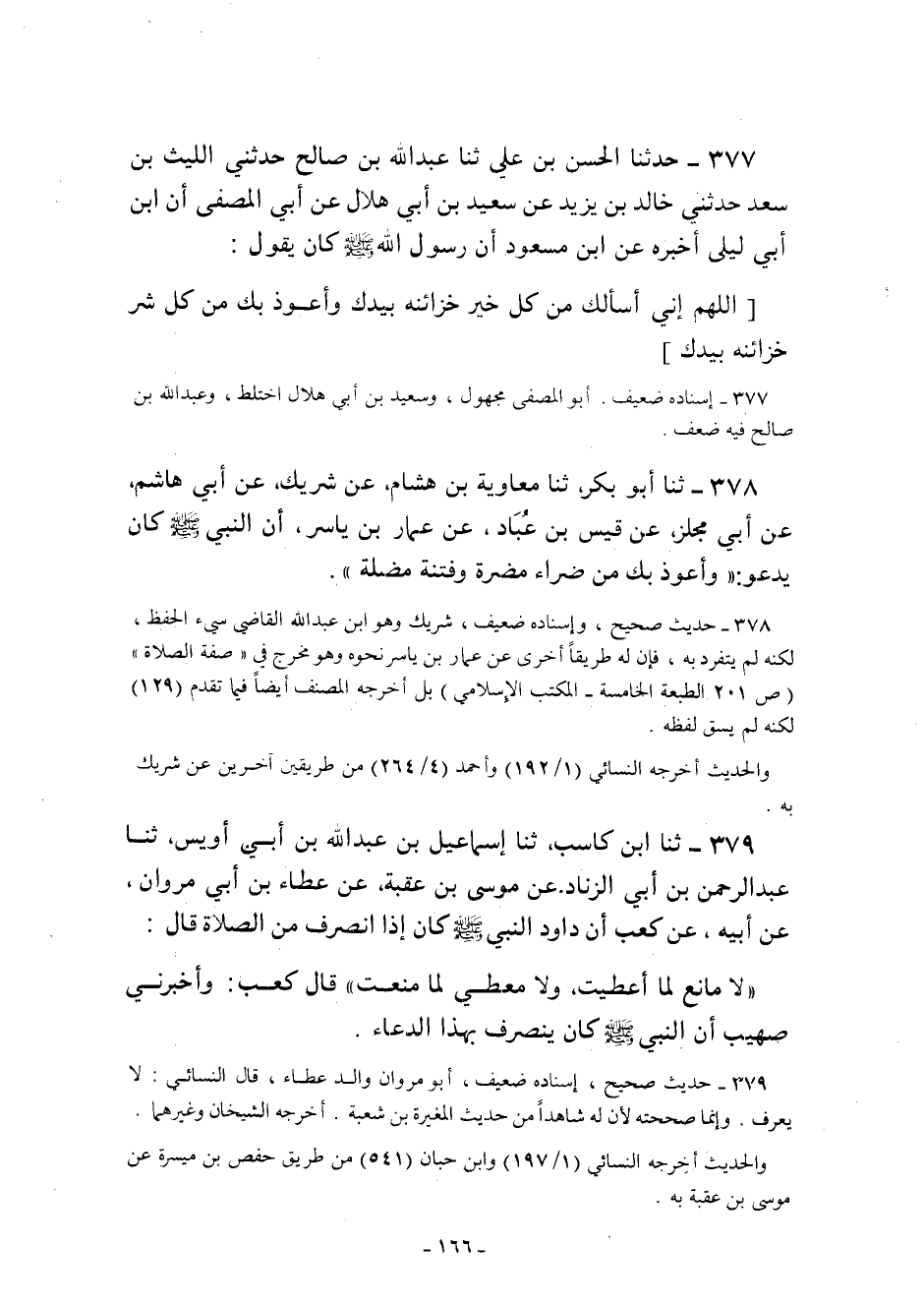 377- حَدَّثَنَا الْحَسَنُ بْنُ عَلِيٍّ ثنا عَبْدُ اللَّهِ بْنُ صَالِحٍ حَدَّثَنِي اللَّيْثُ بْنُ سَعْدٍ حَدَّثَنِي خَالِدُ بْنُ يَزِيدَ عَنْ سَعِيدِ بْنِ أَبِي هِلالٍ عَنْ أَبِي الْمُصَفَّى أَنَّ ابْنَ أَبِي لَيْلَى أَخْبَرَهُ عَنِ ابْنِ مَسْعُودٍ أَنّ رَسُولَ اللَّهِ صَلَّى اللَّهُ عَلَيْهِ وَسَلَّمَ كَانَ يَقُولُ:
