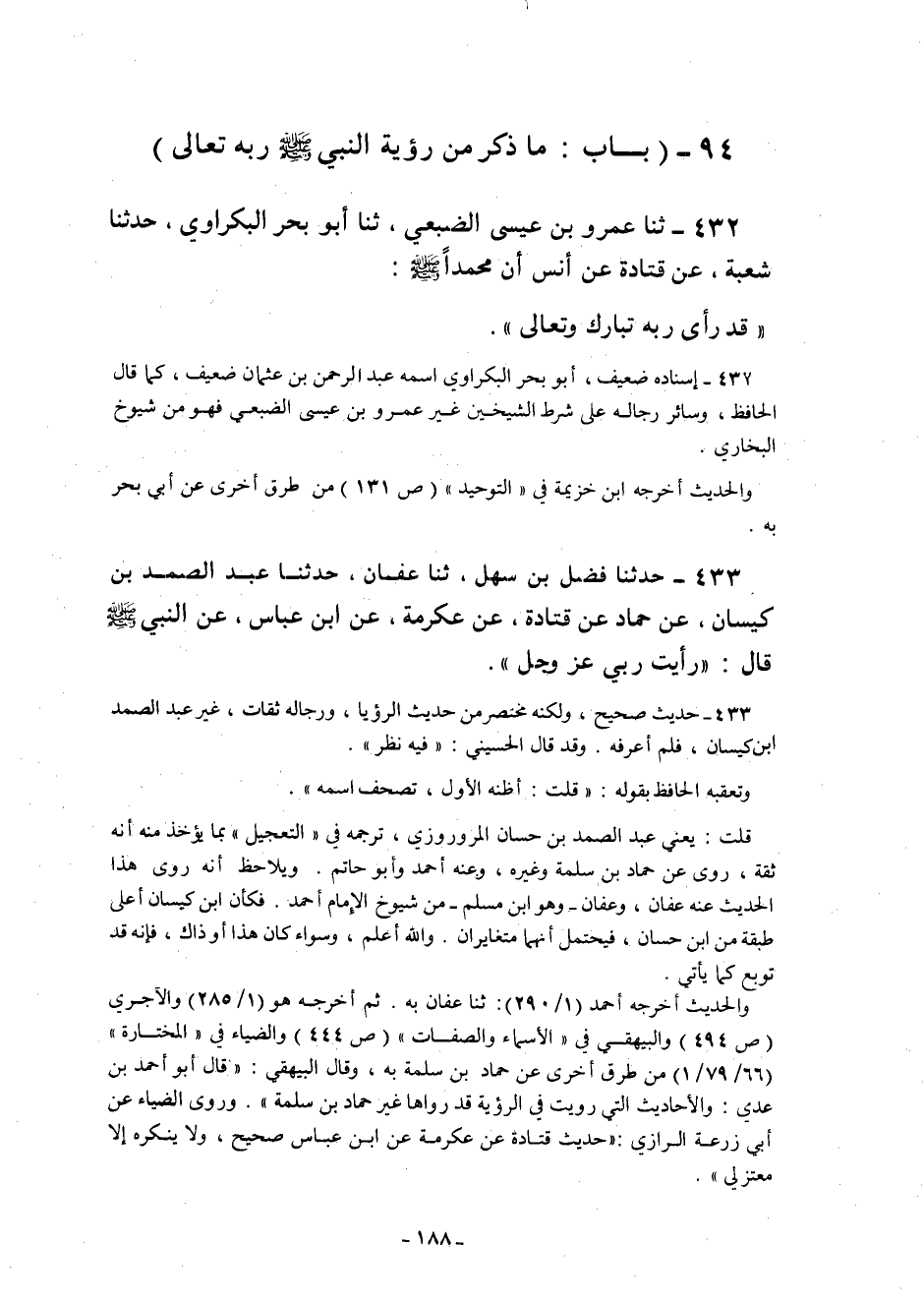94 – "بَابُ: مَا ذُكِرَ مِنْ رُؤْيَةِ النَّبِيِّ صَلَّى اللَّهُ عَلَيْهِ وَسَلَّمَ رَبَّهُ تَعَالَى"