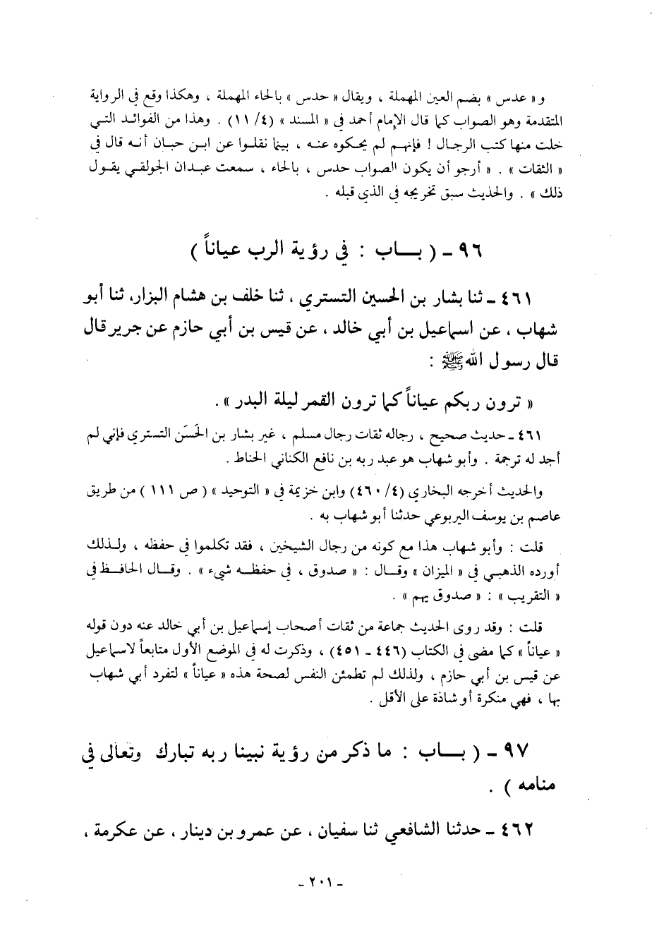 96 – "بَابٌ: فِي رُؤْيَةِ الرَّبِّ عِيَانًا"