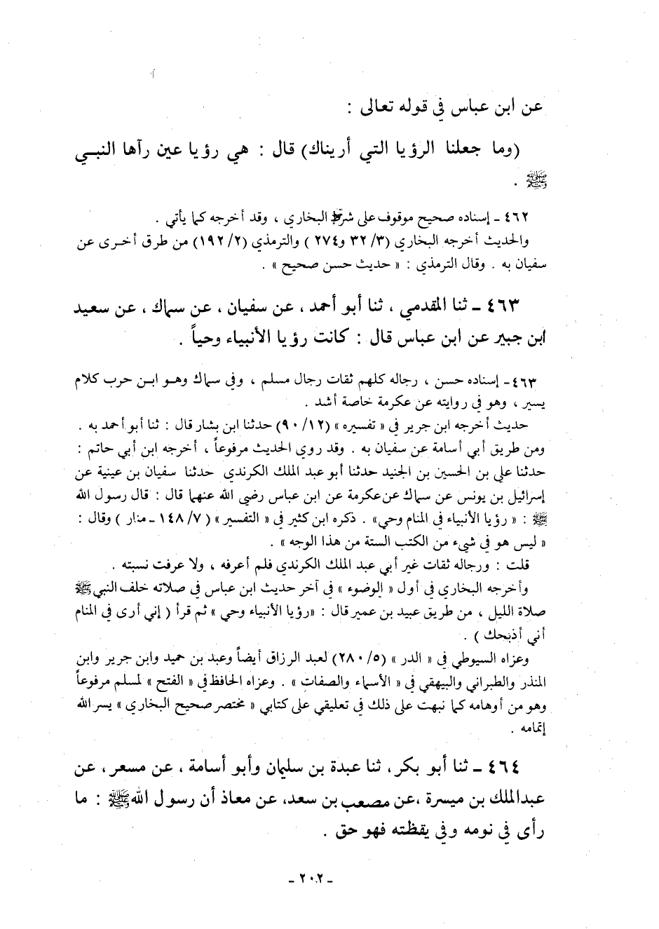 463 - ثنا الْمُقَدَّمِيُّ ثنا أَبُو أَحْمَدَ عَنْ سُفْيَانَ عَنْ سِمَاكٍ عَنْ سعيد ابن جُبَيْرٍ عَنِ ابْنِ عَبَّاسٍ قَالَ: كانت رؤيا الأنبياء وحيا.