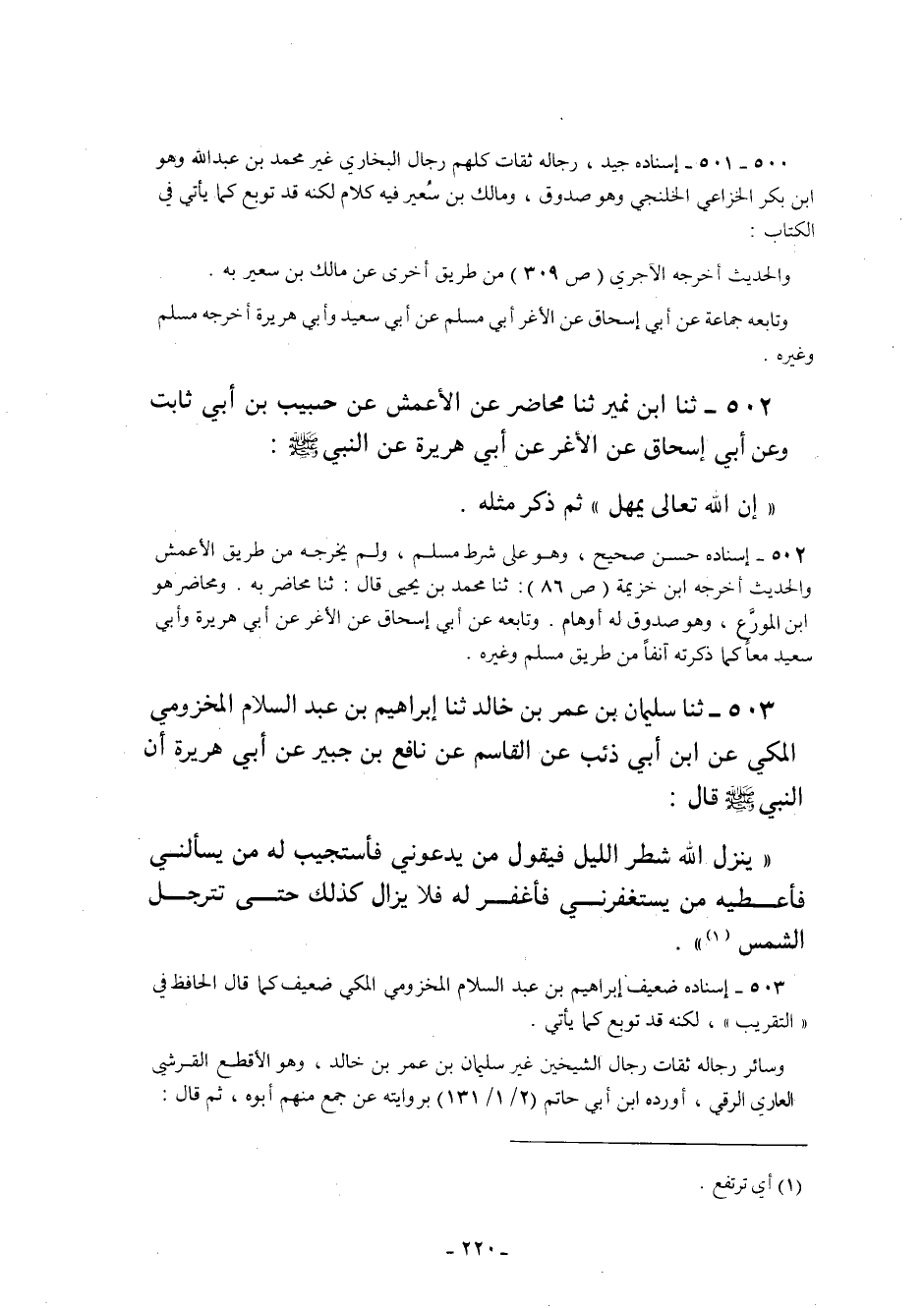 500-501- إسناده جيد رجاله ثقات كلهم رجال البخاري غير محمد بن عبد الله وهو ابن بكر الخزاعي الخلنجي وهو صدوق ومالك بن سعير فيه كلام لكنه قد توبع كما يأتي في الكتاب: